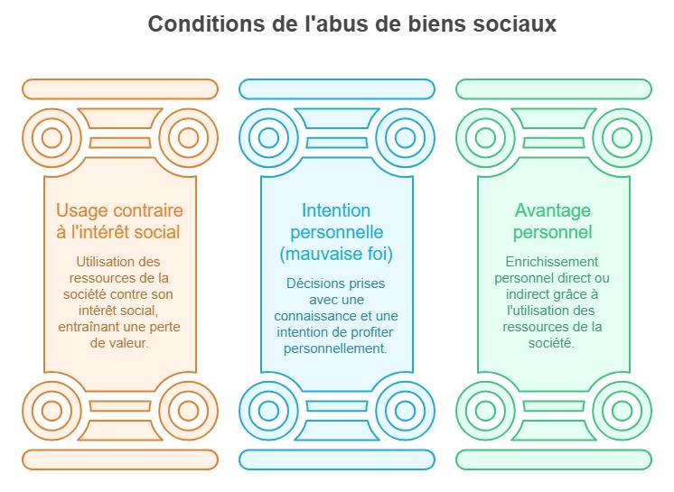 Un abus de biens sociaux repose sur trois éléments simples. Vous devez vérifier ces points avant chaque décision. S’ils sont réunis, le risque est élevé.
