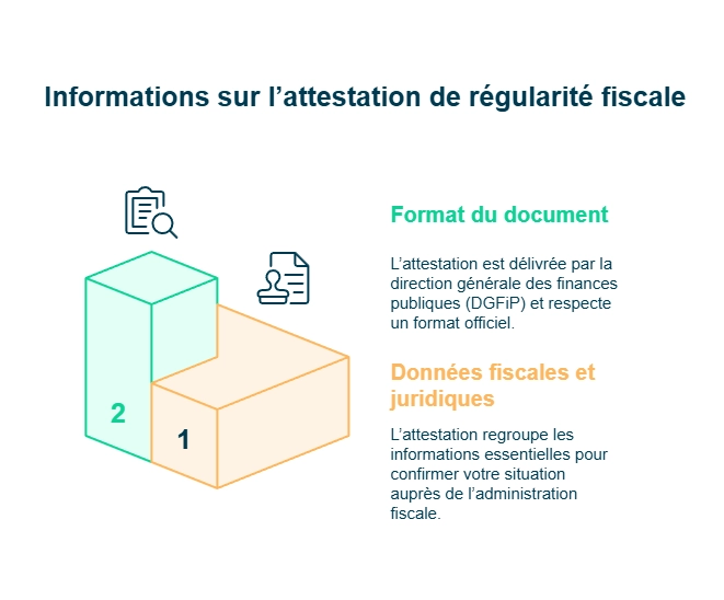 Vous savez désormais si votre entreprise est concernée par l’attestation de régularité fiscale. Je vous détaille maintenant la définition et le contenu de l’attestation, en précisant les informations qu’elle contient et son format officiel.