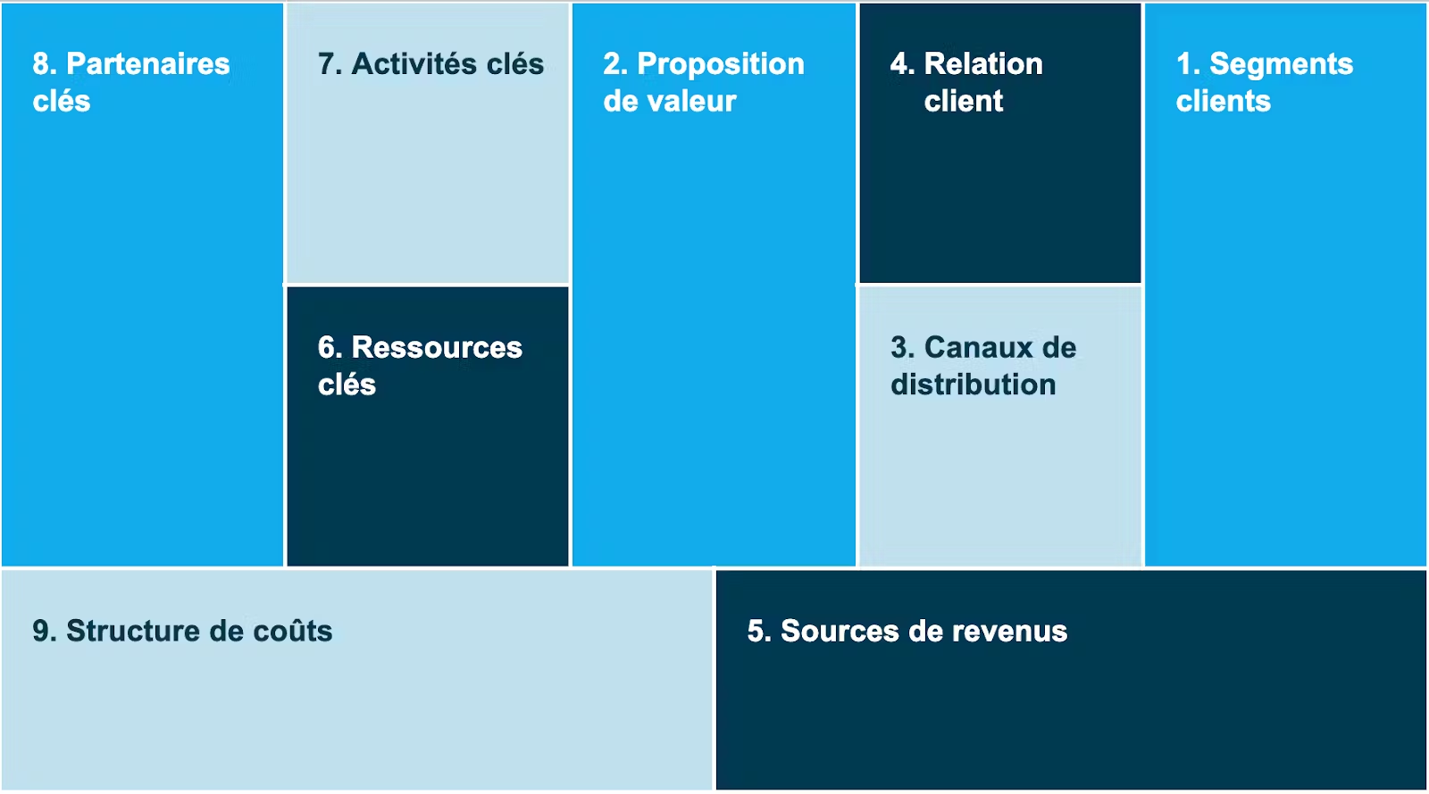 Le BMC se compose de neuf blocs essentiels qui, une fois assemblés, offrent une vision complète du fonctionnement de votre entreprise.