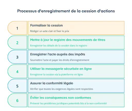 Une fois l’accord conclu et les actions transférées, il reste une étape indispensable : l’enregistrement de la cession auprès de l’administration.