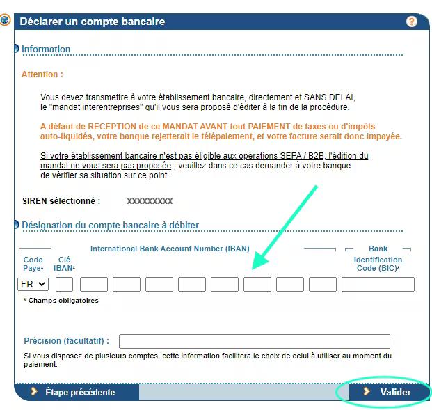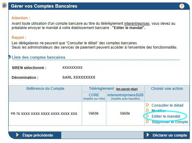 - Répondez “Oui” à la question “Avez-vous reçu un mandat SEPA inter-entreprises ?”