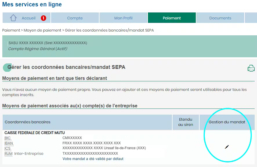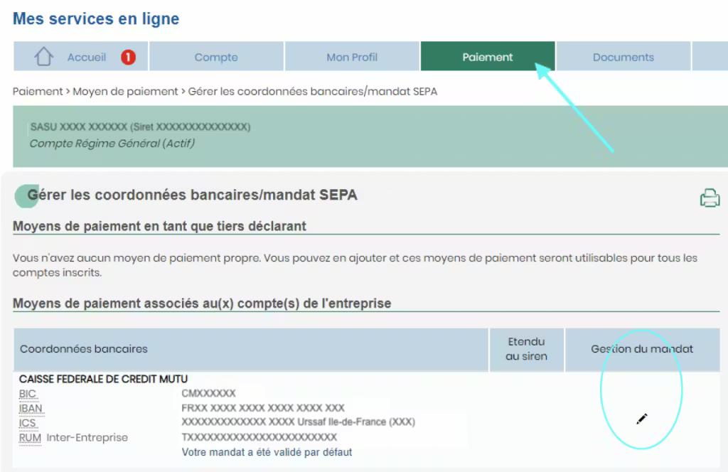 allez dans “Gérer les coordonnées bancaires / mandat SEPA” ;