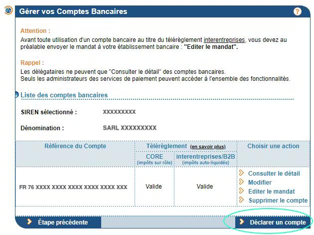 Pour cela, il vous suffira alors de vous reconnecter à votre espace professionnel, de retourner dans “Gérer les comptes bancaires” :