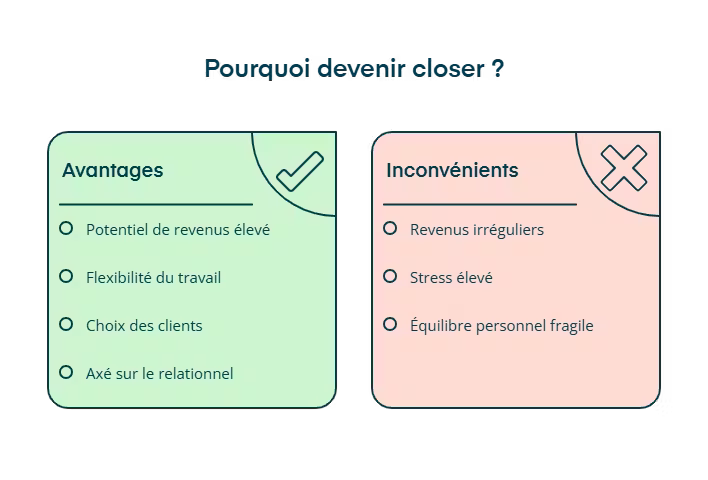 Vous avez désormais une idée plus claire du profil idéal du closer. Mais qu’est-ce qui rend ce métier aussi attractif et pourquoi il séduit de plus en plus de personnes en quête d’indépendance ?