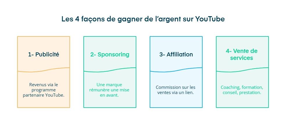 - Un youtubeur peut générer des revenus de plusieurs façons. Publicité via Google Adsense, sponsoring, affiliation ou vente de produits et services.