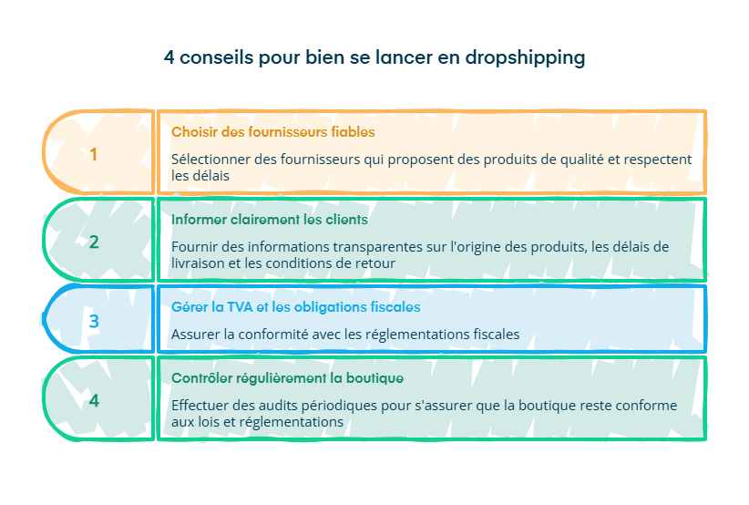 Le dropshipping peut être une activité viable, à condition d’adopter les bons réflexes dès le départ.Je vous partage les points de vigilance essentiels pour démarrer sur des bases solides.