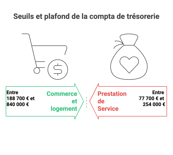 Voici les seuils de chiffre d’affaires hors taxes par an que votre entreprise ne doit pas dépasser pour tenir une comptabilité de trésorerie.