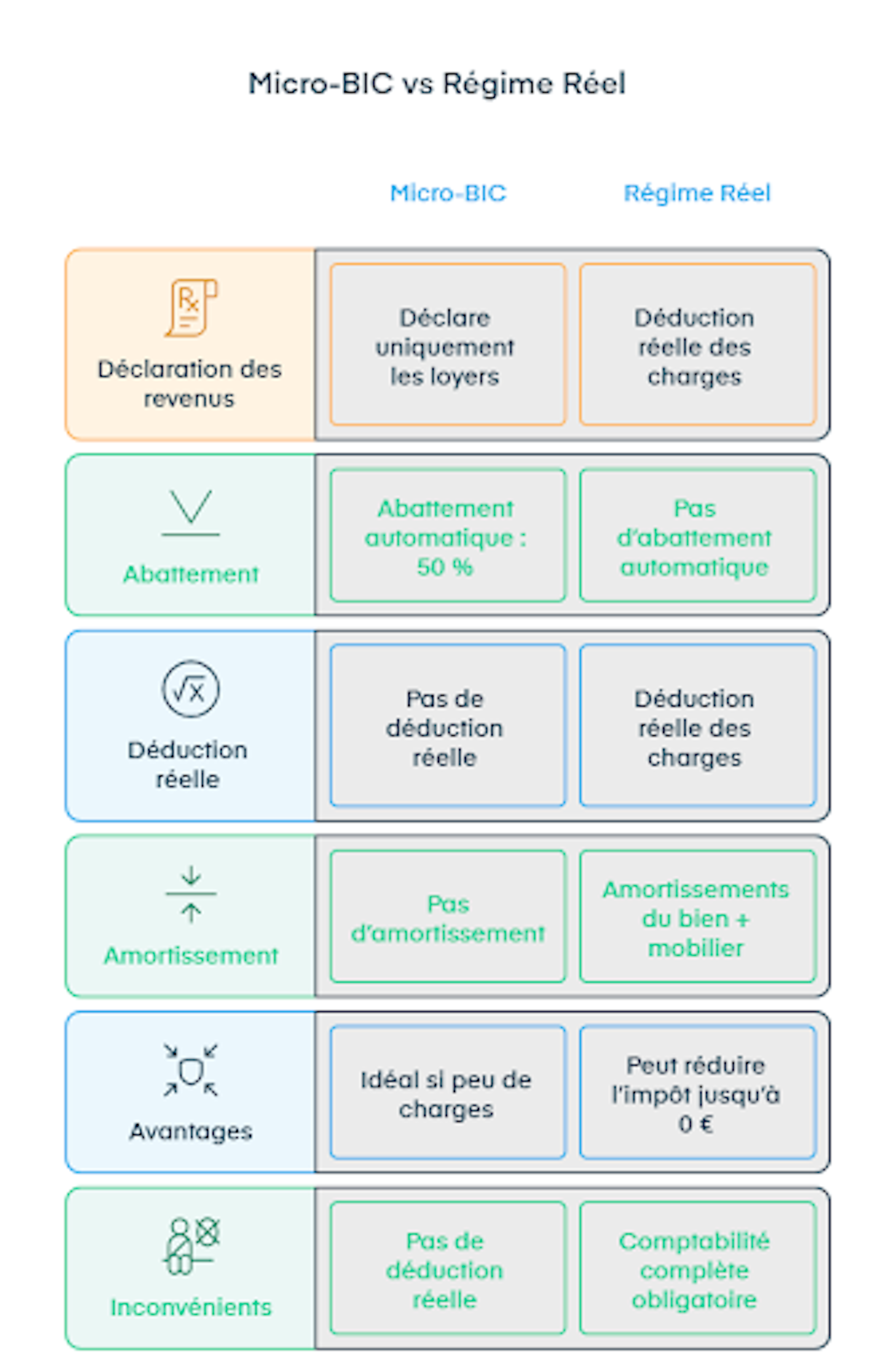 Votre rôle, en tant que loueur, est de choisir le régime fiscal le plus avantageux entre le micro-BIC et le régime réel, de tenir une comptabilité rigoureuse et de déduire ou amortir vos charges pour améliorer votre rentabilité.