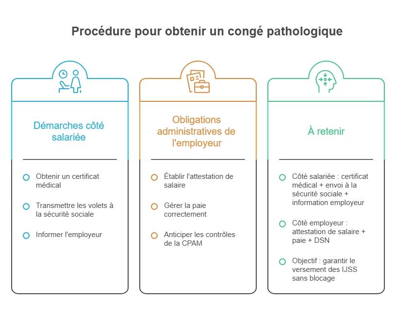 Vous devez maîtriser la procédure du congé pathologique pour éviter les erreurs administratives. Un oubli (attestation, DSN, mention médicale) peut bloquer l’indemnisation par la CPAM.