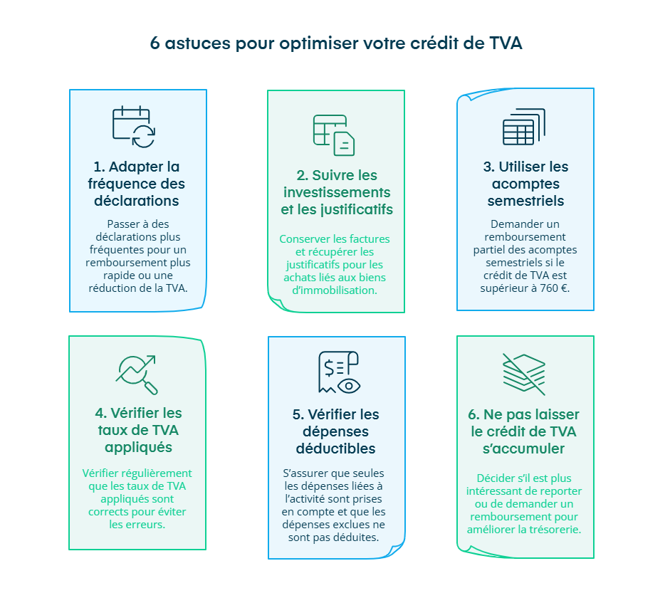 En résumé, pour optimiser votre crédit de TVA, vous pouvez :