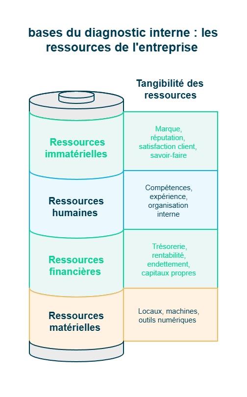Pour réaliser un bon diagnostic interne, vous devez d’abord analyser ce que votre entreprise possède réellement. Une entreprise est avant tout un ensemble de ressources combinées pour créer de la valeur.