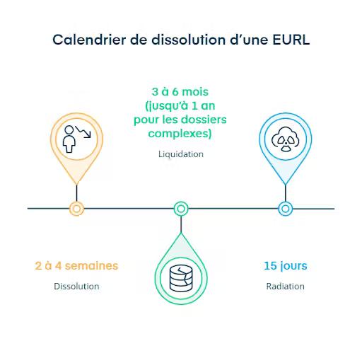 Concrètement, vous devez donc prévoir 6 à 12 mois entre votre décision de dissoudre l’EURL et sa disparition définitive.