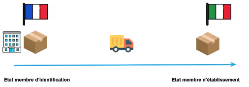 1er cas : si vos clients particuliers résident dans le même État que celui où se trouve votre stock (Italie), vous devez alors déclarer la TVA sur ces ventes directement via la déclaration de TVA nationale à souscrire auprès de l’administration fiscale de l’Etat membre concerné. Vous n’avez pas le droit de déclarer la TVA sur ces ventes via le guichet unique OSS. Dans notre exemple, la déclaration de vos ventes depuis votre stock situé en Italie à des clients particuliers italiens se fera via une déclaration de TVA italienne. Vous devrez nécessairement disposer d’un numéro de TVA italien dans ce cas.