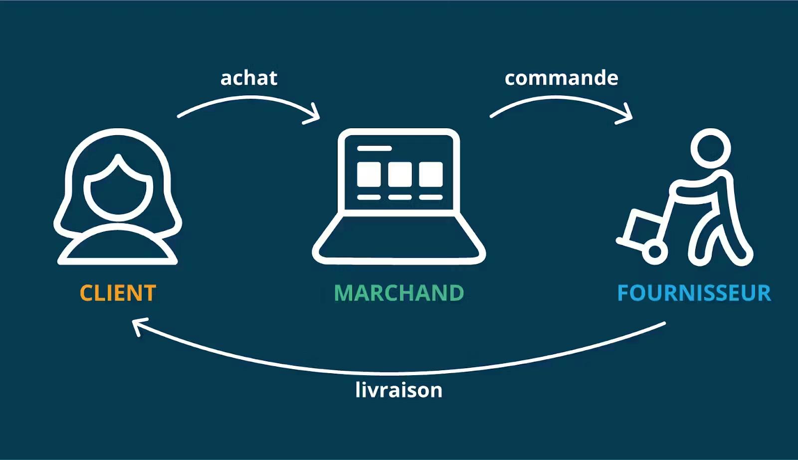 - Vous vendez des biens importés sans stock, le fournisseur livre directement le client final.