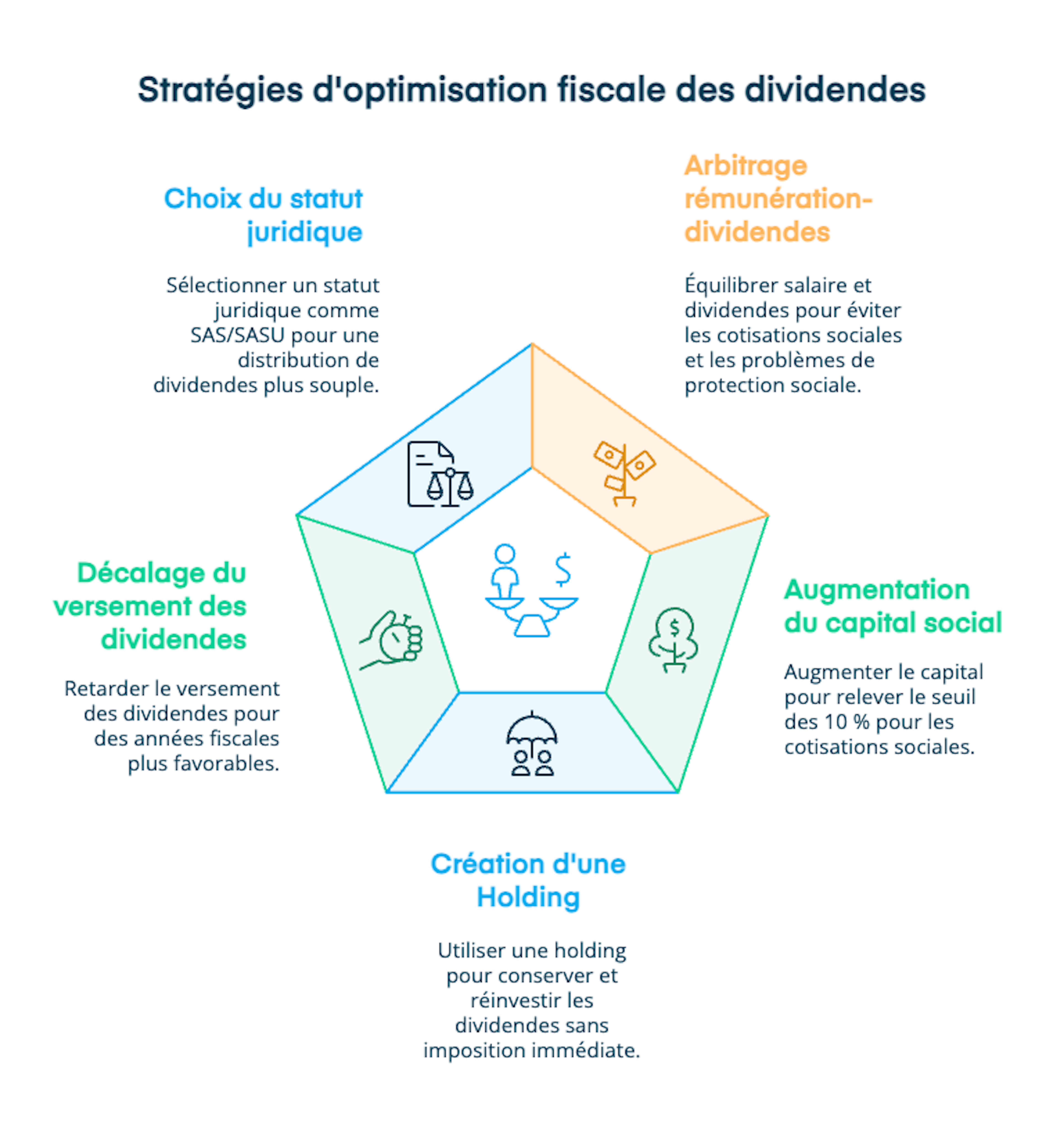 Il existe plusieurs leviers pour réduire l’imposition des dividendes, dont certains dépendent directement de la forme juridique de l’entreprise et du statut social du dirigeant. Voici les principaux réflexes à connaître :