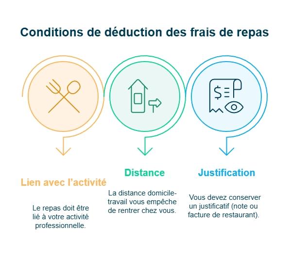 Pour qu’un repas soit admis en déduction, plusieurs conditions doivent être respectées :