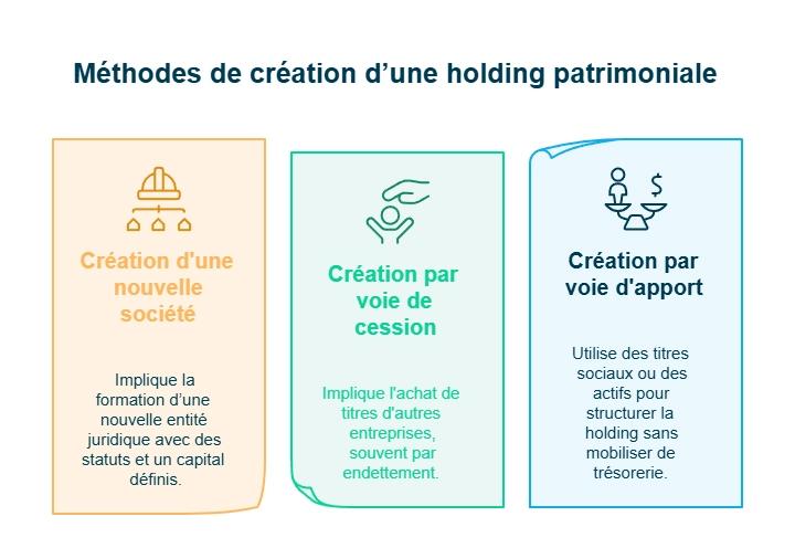 Vous pouvez créer votre holding patrimoniale de trois façons :