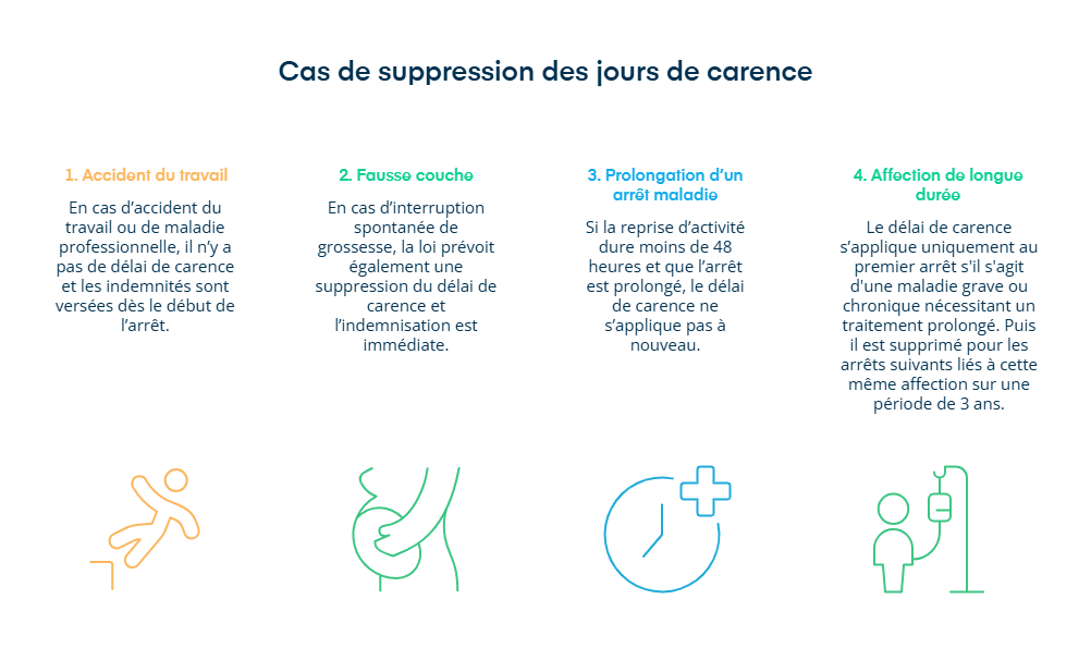 Pour résumer, le principe des jours de carence connaît plusieurs exceptions importantes.
