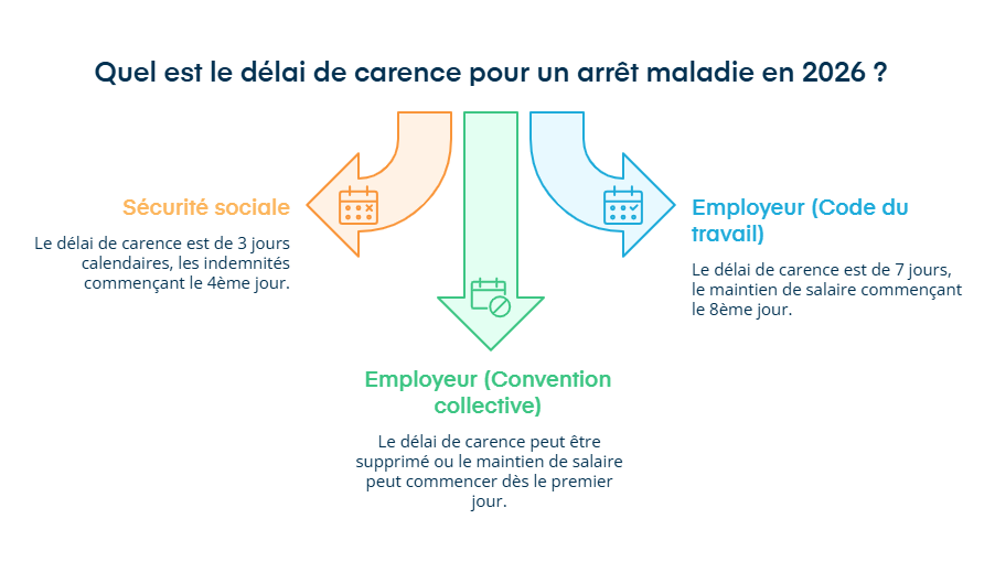 Combien de jours de carence s’appliquent en cas d’arrêt maladie en 2026 ?