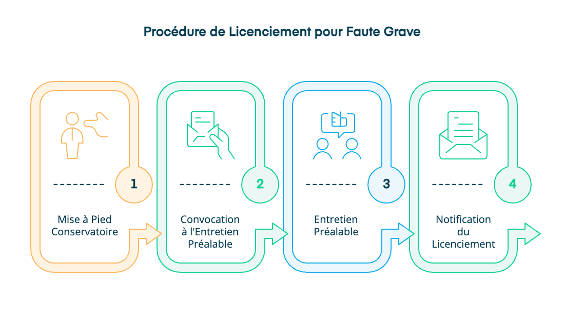 En pratique, l’employeur peut décider d’une mise à pied conservatoire, éventuellement formalisée par une lettre de mise à pied conservatoire. Cette mesure permet d’écarter immédiatement le salarié de l’entreprise dans l’attente de la décision finale.