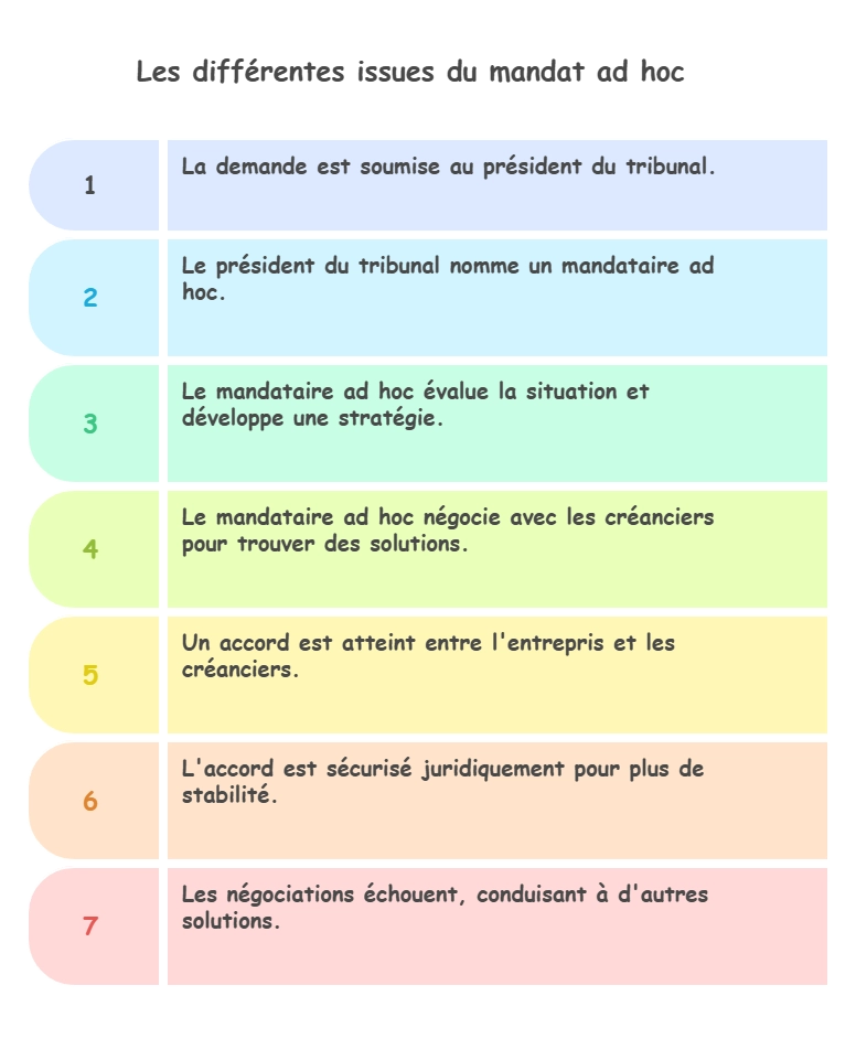- Un accompagnement par un mandataire ad hoc : un professionnel vous aide à négocier avec vos créanciers.