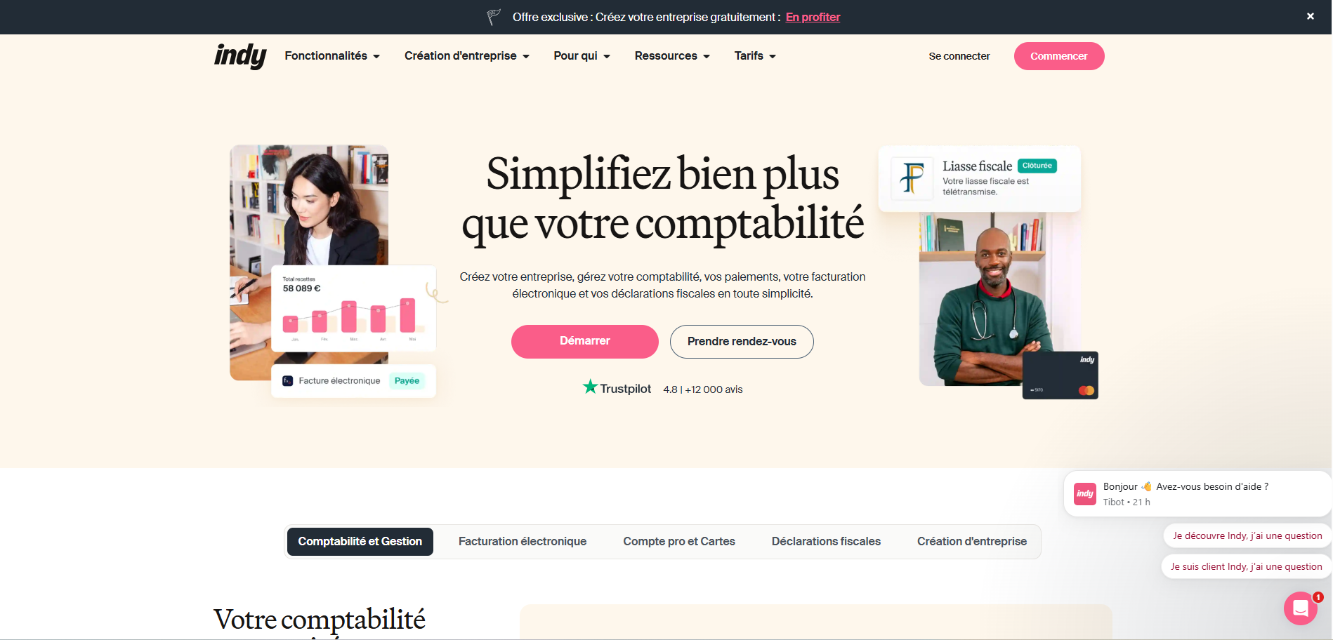 Indy a révolutionné la vie des freelances en automatisant la comptabilité. Leur module de facturation est totalement gratuit et illimité, ce qui en fait une option extrêmement compétitive pour les professions libérales.