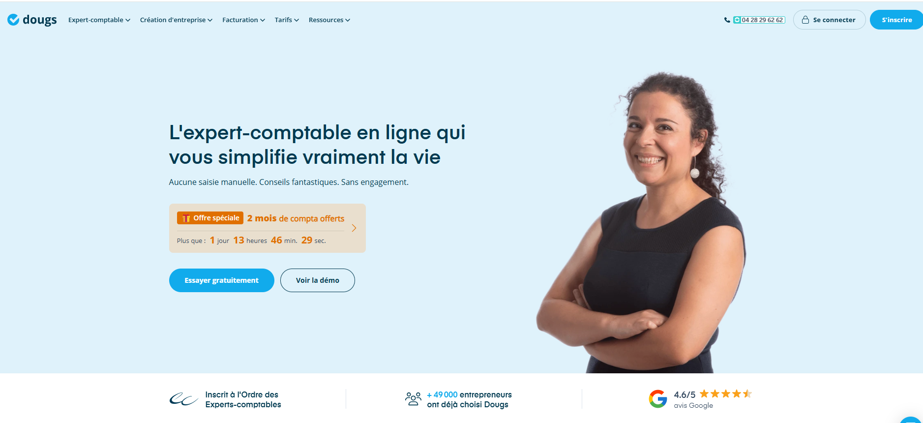 Dougs | Auto-entrepreneurs, indépendants, TPE | ⭐ 4.6/5 | 49€/mois | ❌ (Accompagnement) | ✅ Oui |