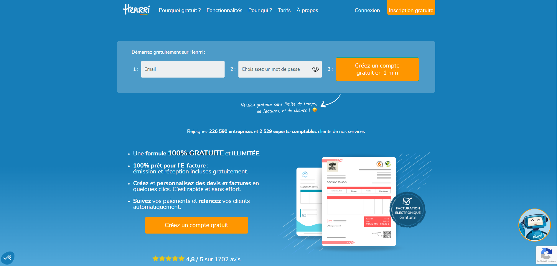 Henrri est une solution robuste qui propose une version gratuite sans limite de nombre de factures ou de clients. C'est l'outil idéal pour les TPE et artisans qui cherchent un logiciel sérieux sans frais fixes mensuels.