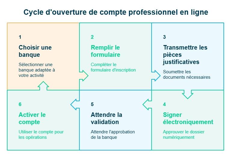 L’ouverture d’un compte professionnel en ligne se fait généralement en quelques étapes. La procédure se déroule directement sur le site ou l’application de la banque.