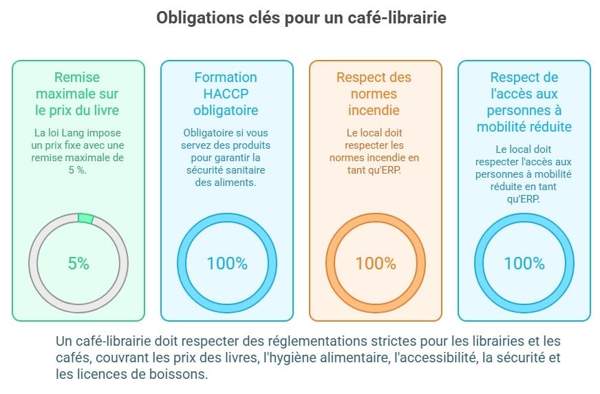 Un café-librairie combine deux cadres légaux. Vous devez respecter les réglementations spécifiques applicables à la fois à la librairie et au café, notamment en matière d’hygiène, de sécurité, de licences et d’affichage.