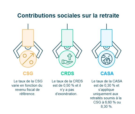 Les pensions de retraite sont soumises aux contributions sociales suivantes :