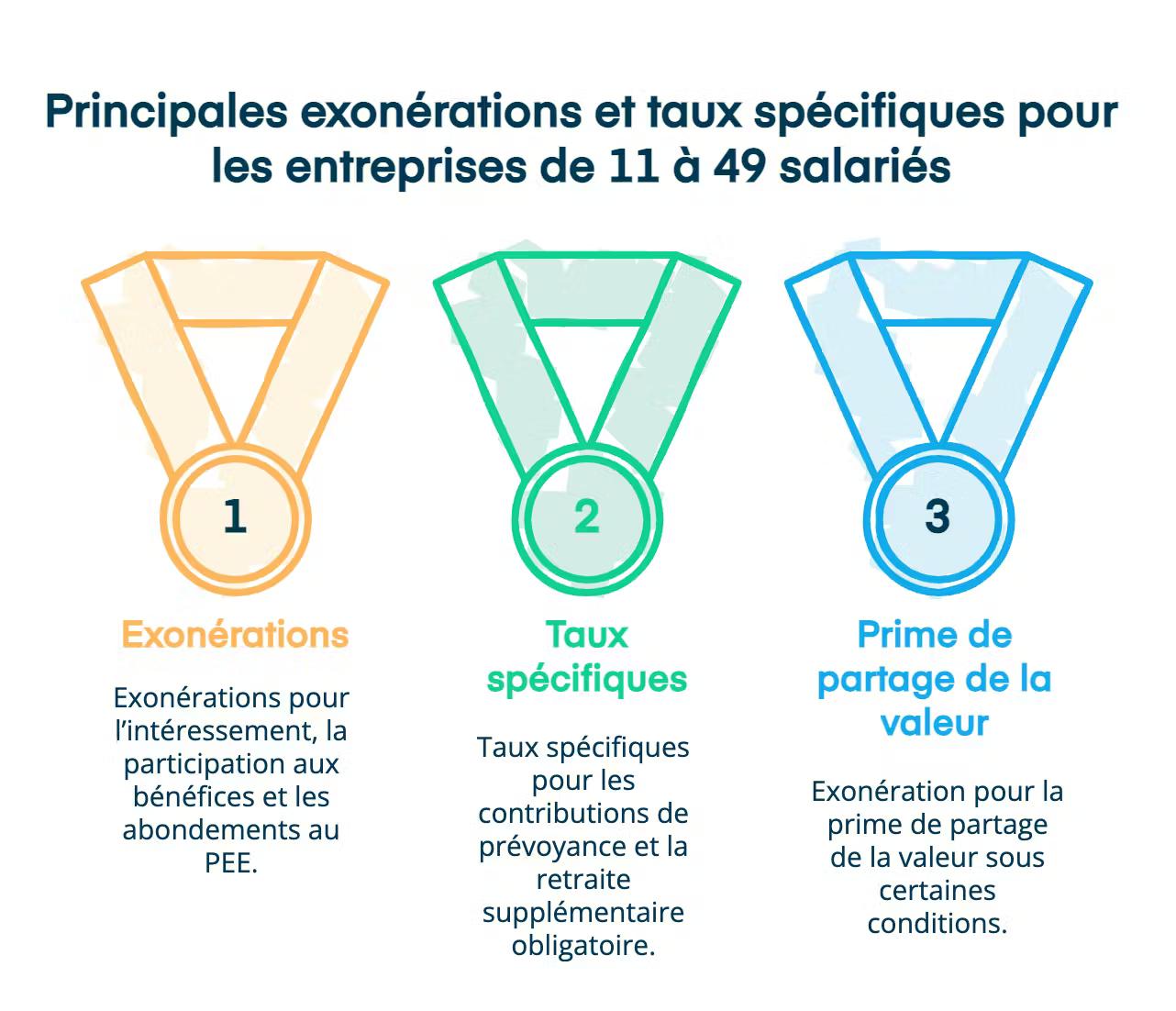 Outre les exonérations, voici les taux spécifiques des entreprises entre 11 et 49 salariés :