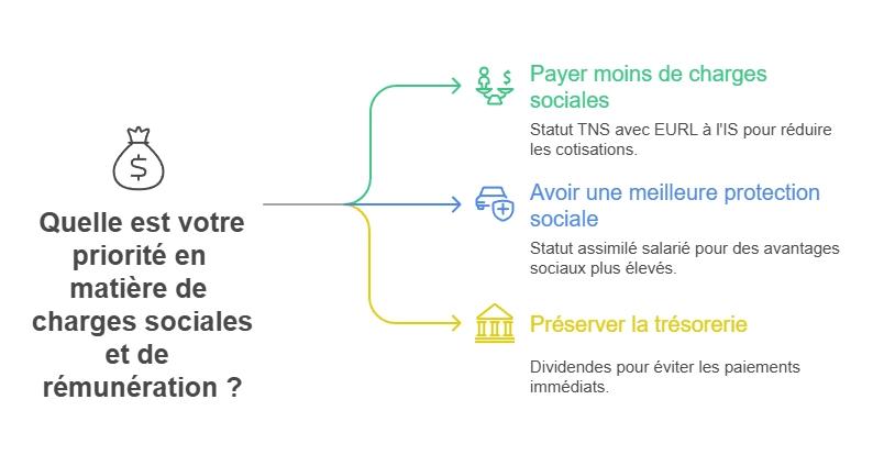 - Vous cherchez à payer moins de charges sociales → le statut TNS est souvent le plus intéressant, surtout si vous êtes en EURL à l’IS.