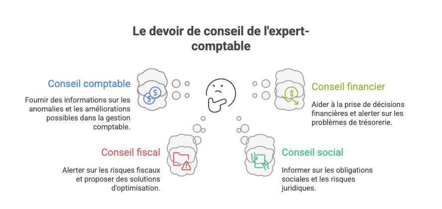 Dans le cas de l'expert-comptable, cette obligation de moyens s'applique non seulement à ses missions comptables, mais aussi à son devoir de conseil.