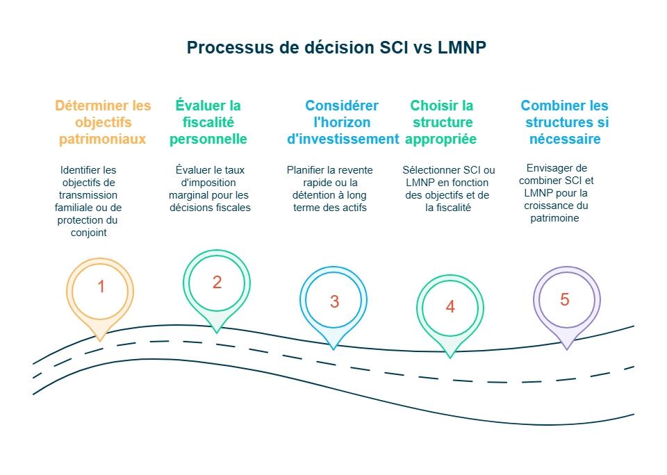 Pour choisir entre SCI et LMNP, appuyez-vous sur trois étapes simples : vos objectifs, votre fiscalité et votre horizon d’investissement.