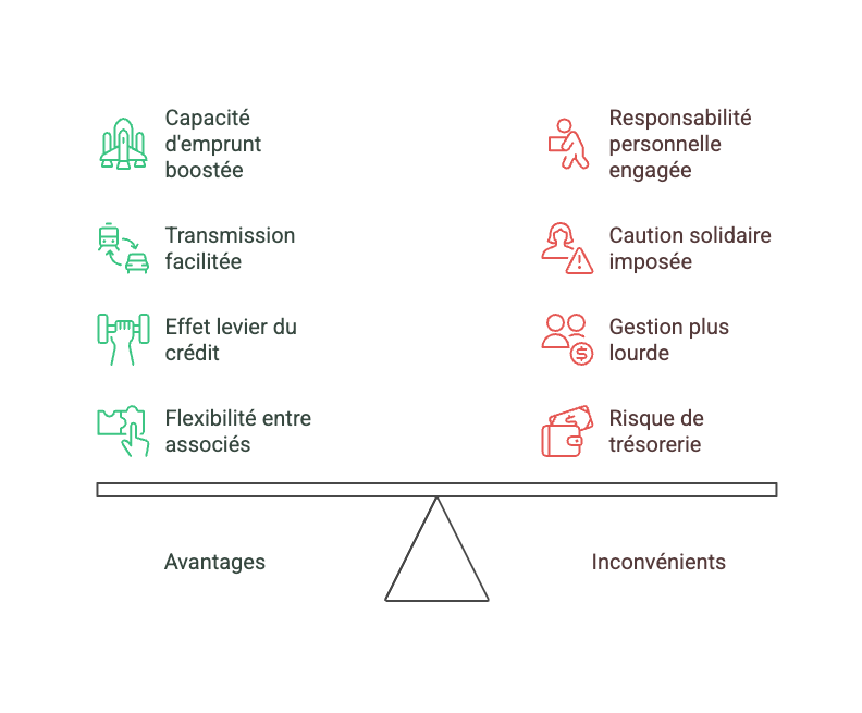Même si la SCI offre de nombreux avantages, elle comporte aussi des contraintes importantes qu’il faut anticiper avant de se lancer. Ces risques concernent autant la responsabilité financière des associés que la gestion quotidienne ou la trésorerie.
