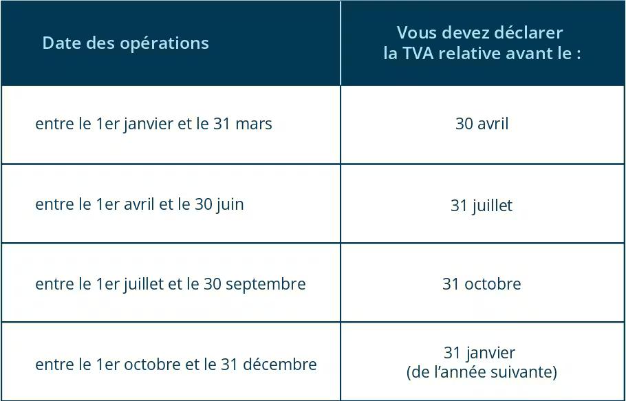 La déclaration via le guichet unique de TVA se fait chaque trimestre. En pratique :