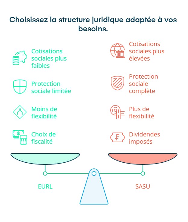 Enfin, la gestion administrative est plus encadrée en EURL et plus souple en SASU, et les dividendes y sont traités différemment selon le régime social du dirigeant.